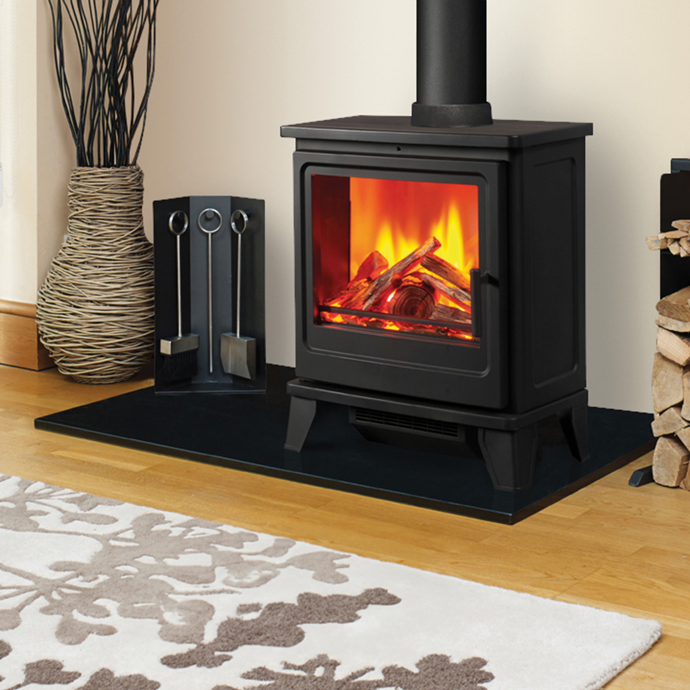 De Fair Fires Solution Blackthorn Stove is ontworpen met een vlammenpatroon dat bijna niet van echt te onderscheiden is. U kunt kiezen tussen een echt houtblok of met de hand gedecoreerde keramische houtbranderbedden, die beide zorgen voor een authentieke uitstraling. En met vier helderheidsinstellingen en 16 vlameffectkleuren kunt u eenvoudig de gewenste sfeer creëren, passend bij elke gelegenheid of stemming.