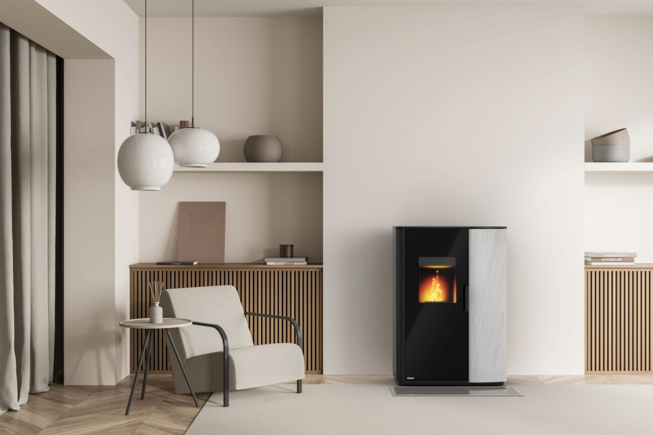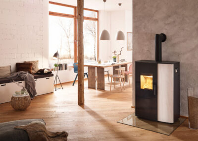 – het gemak van een pelletkachel en de gezellige vlam van een houtkachel